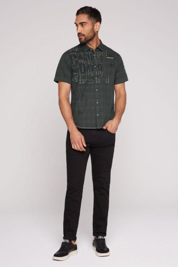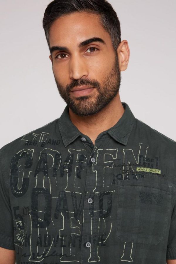 Das lässige Freizeithemd von CAMP DAVID setzt auf eine tonige Webstruktur und auf einen großen Used Print mit Stickereien auf der Vorderseite. Eine Brusttasche, sowie kleinere Artworks auf dem linken Ärmel und der rechten Schulter runden das Design ab. Das Model ist 190 cm groß und trägt Gr. M.