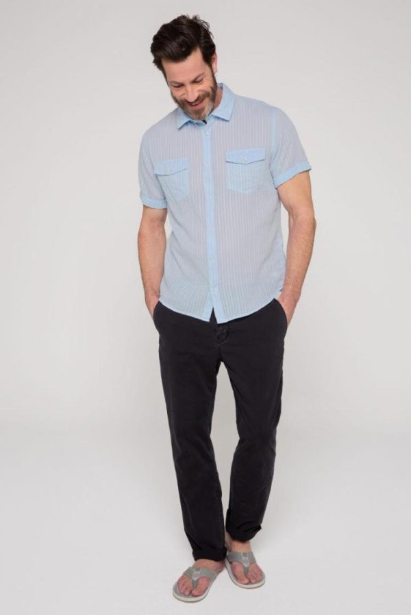 Aus Bio-Baumwolle ist das leichte Kurzarmhemd mit Webstreifen von CAMP DAVID gefertigt. Geknöpfte Klappentaschen und Ärmelaufschläge runden das Design ab. Das smarte Hemd ist ein zeitloses Essential, angenehm zu tragen und sorgt für echt smarte Outfits. Das Model ist 189 cm groß und trägt Gr. M.