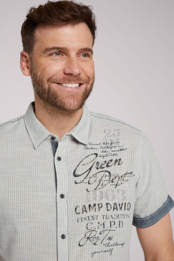 Lässig und bequem ist das kurzärmelige Freizeithemd von CAMP DAVID. Es punktet mit einem coolen Streifenmuster und plakativen Label Prints mit Stickereien. Die Unterseiten von Kragen, Knopfleiste und Ärmelsaum sind mit Kontrastmaterial abgesetzt. Das Model ist 191 cm groß und trägt Gr. M.