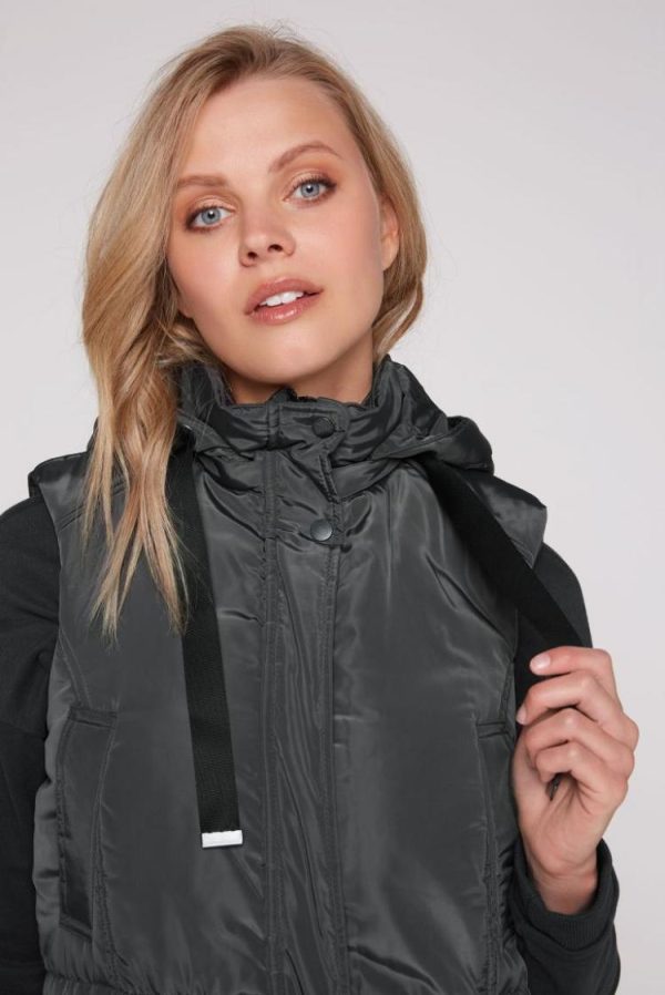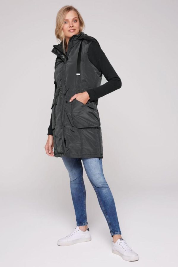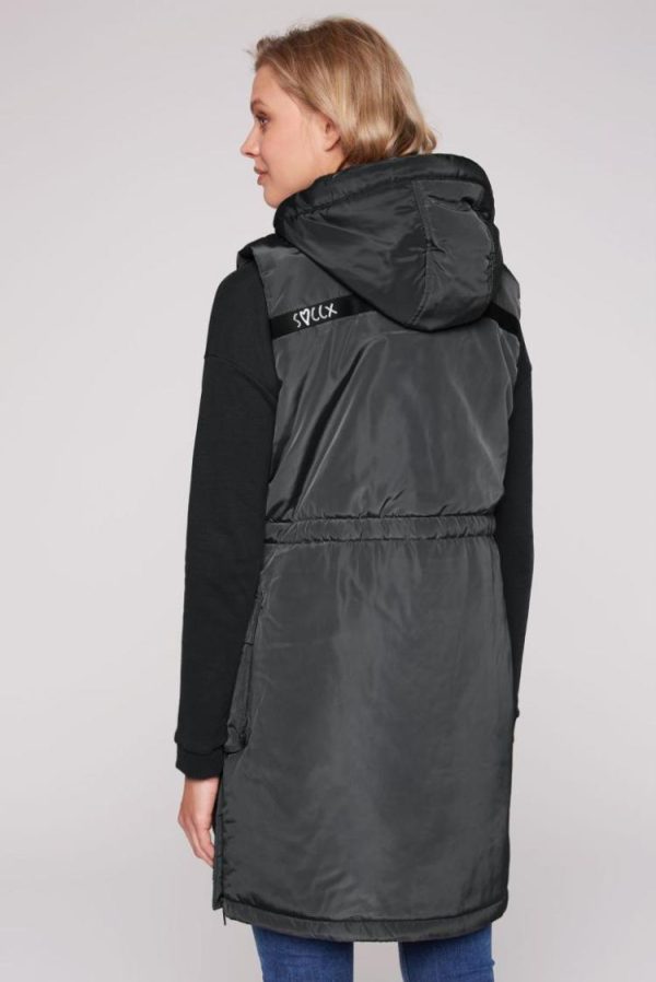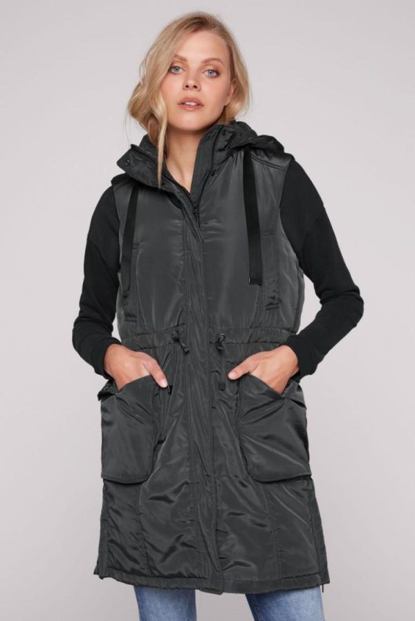 Ein super Styling-Essential ist die lange Weste mit edler Satin-Optik von SOCCX. Sie ist mit einer abtrennbaren Kapuze mit Tunnelzugband gestaltet und hat einen verdeckten Frontzipper. Praktisch sind die höher liegenden Einschubtaschen und die großen Klappentaschen. Ein Taillenband reguliert die Weite, kleine Seitenschlitze mit Reißverschlüssen erweitern den Tragekomfort. Das Model ist 177 cm groß und trägt Gr. S.