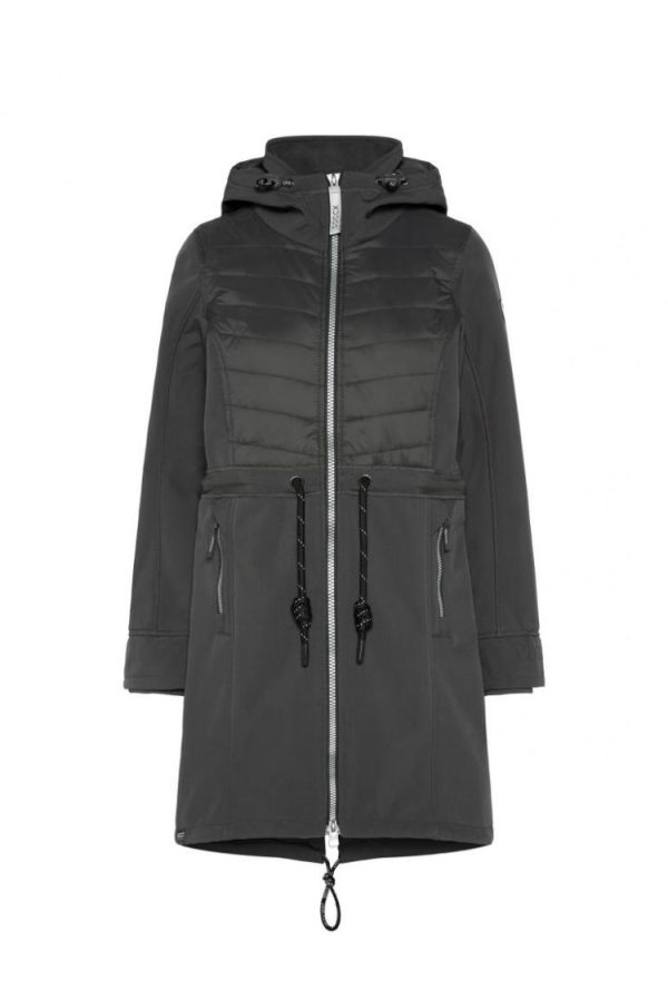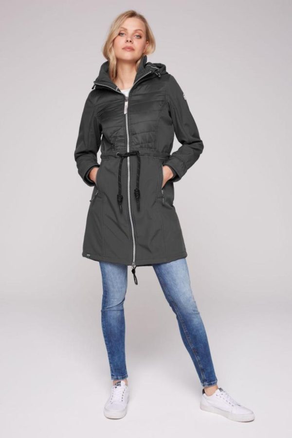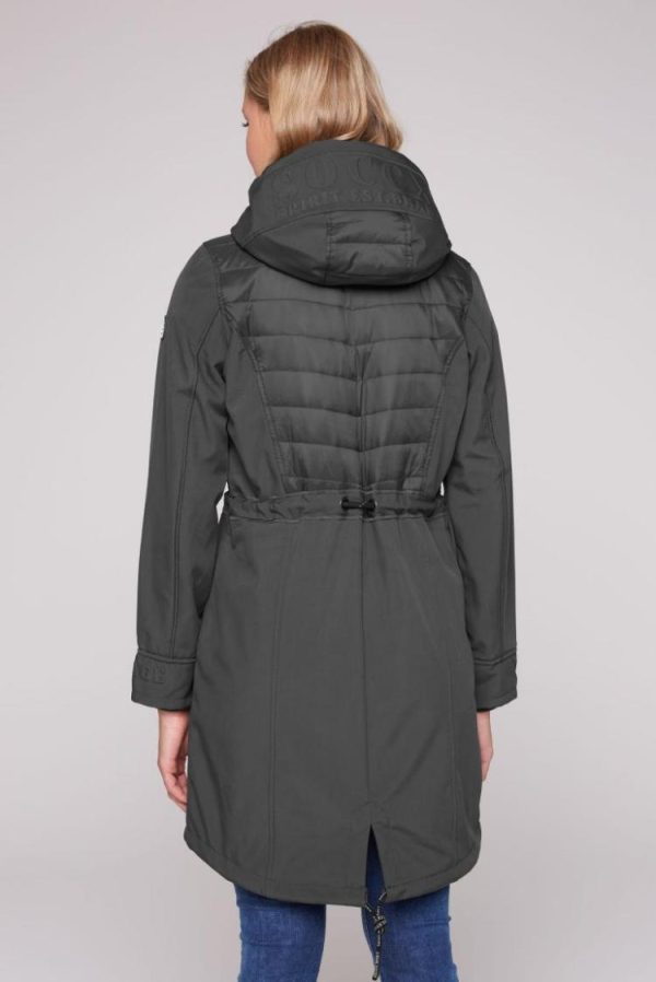 Schmuddelwetter trotzen wir ab sofort mit diesem funktionalen Softshell-Parka von SOCCX. Er ist bestens ausgestattet, mit einer Kapuze mit verstellbarem Gummizug, einem 2-Wege-Reißverschluss, Zippertaschen, Rippbündchen in den Ärmeln und einem verstellbaren Taillenband. Für modische Akzente sorgen die tonigen Stepppartien an der Vorder- und Rückseite, sowie die Prägedrucke an der Kapuze und am linken Ärmel. Das Model ist 177 cm groß und trägt Gr. S.