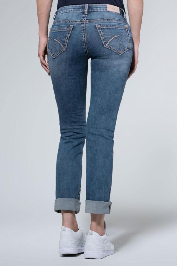 Dieser Regular Fit von SOCCX hat eine klassische Stone-Used-Waschung mit camelfarbenen Steppnähten. Der elastische Fit überzeugt mit einer komfortablen Oberschenkelweite und einem geraden Beinverlauf. Es ist eine perfekte SOCCX Jeans für die Casual-Garderobe. Das Model ist 178 cm groß und trägt W27/L32. Sonderverpackung Jeans: Für den Erhalt der Used-Optik werden die Hosenbeine der Jeans gerafft und so speziell verpackt geliefert.