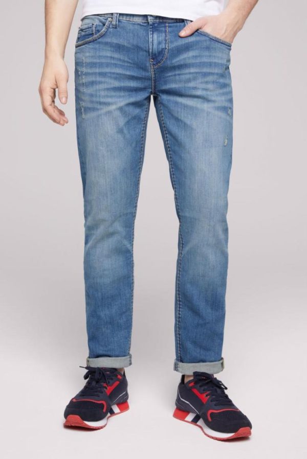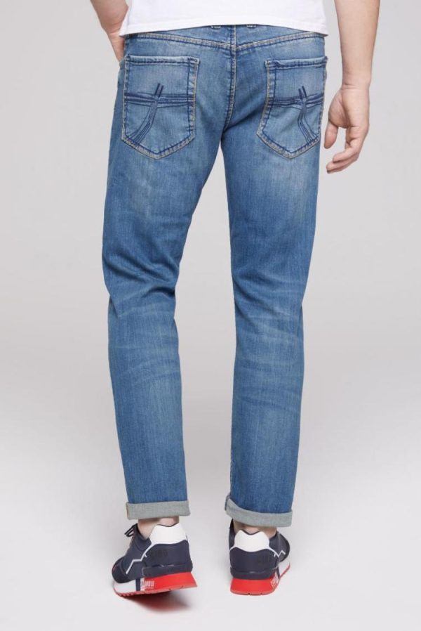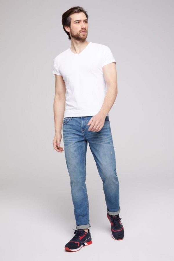 Destroy- und Moustache-Effekte verleihen der CAMP DAVID Denim einen lässigen Used Look. Die Denim hat eine mittelblaue Waschung, einen Five-Pocket-Style und die beliebten, dicken Steppnähte. Das Model ist 187 cm groß und trägt W32/L34.