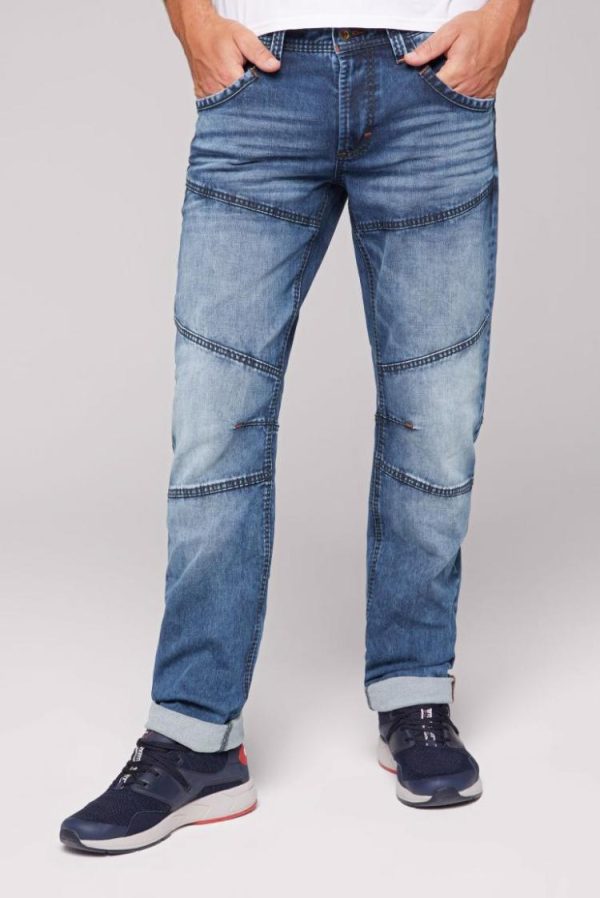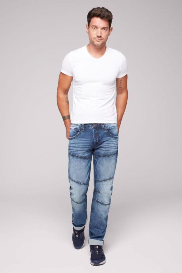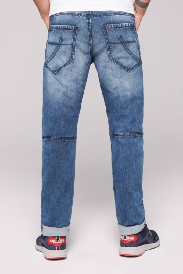 Abwechslung in die Denim-Styles bringt diese CAMP DAVID Jeans mit ihren Teilungsnähten und der Abformung im Kniebereich. Die maskuline Jeans hat zudem tief sitzende Gesäßtaschen, Wrinkle-Effekte und eine lässige Used-Waschung. Und sie ist aus coolem Sweatmaterial im Denim Look gefertigt. Coole Marke – cooler Style! Das Model ist 188 cm groß und trägt W32/L34.
