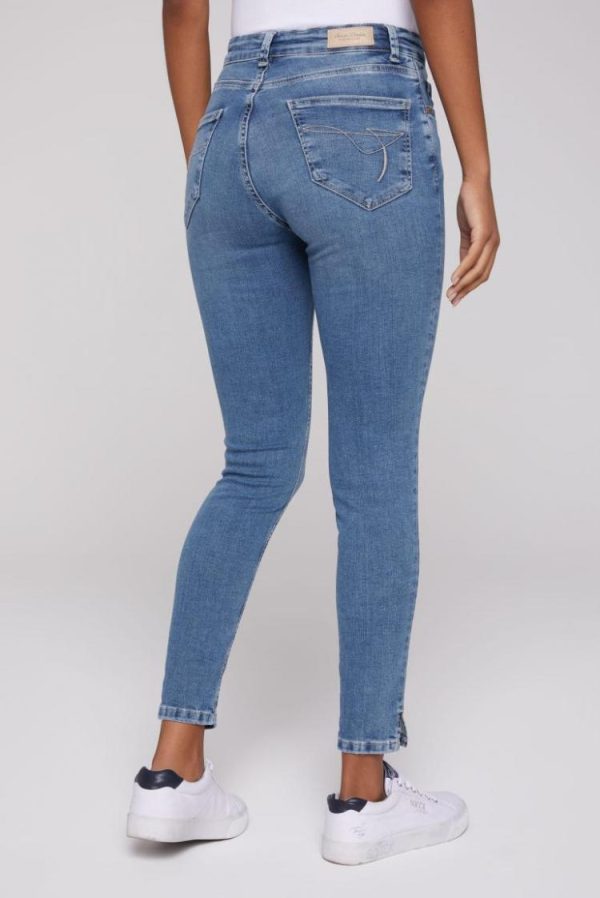 Jeans ist nicht gleich Jeans, auf die Waschung kommt es an! Diese schmal geschnittene MI:RA Jeans trumpft mit einem klassischen mittelblau. Durch die authentischen Wasch-Effekte erhält sie den perfekten Used Look. Tragen kann man dazu einfach alles! Das Model ist 177 cm groß und trägt W27.