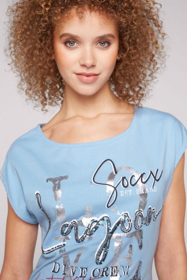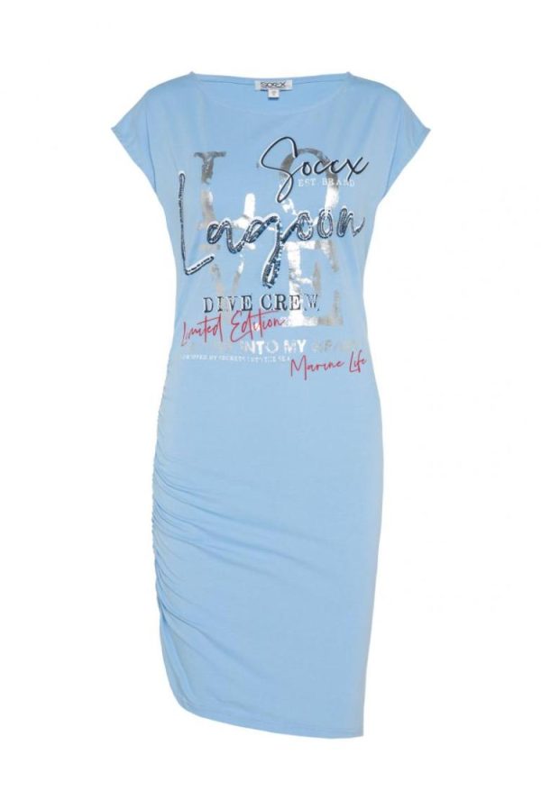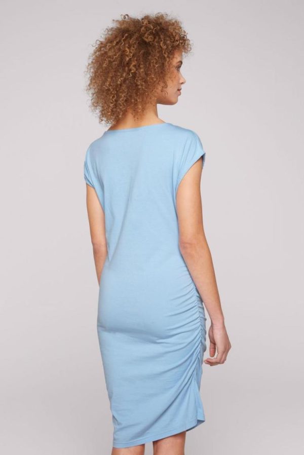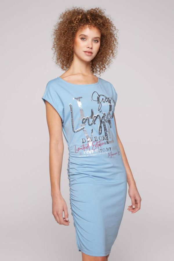 Das leichte Jersey-Kleid von SOCCX ist ein Must-have für die Sommer-Garderobe. Es ist ärmellos geschnitten, hat einen Rundhalsausschnitt und eine Raffung an der rechten Seitennaht. Ein dekorativer Label Print mit Pailletten-Wording ziert die Vorderseite. Das Model ist 174 cm groß und trägt Gr. S.