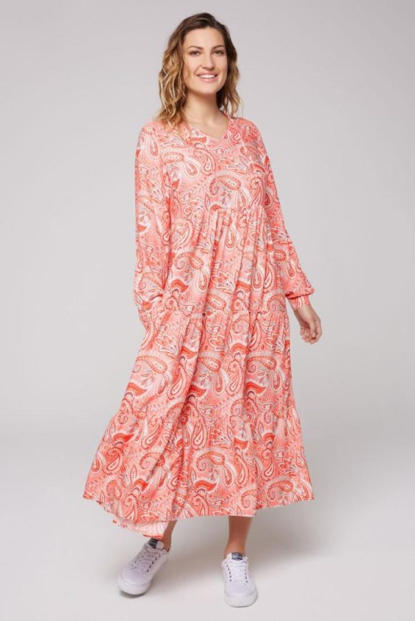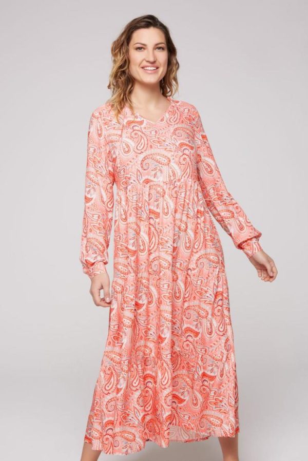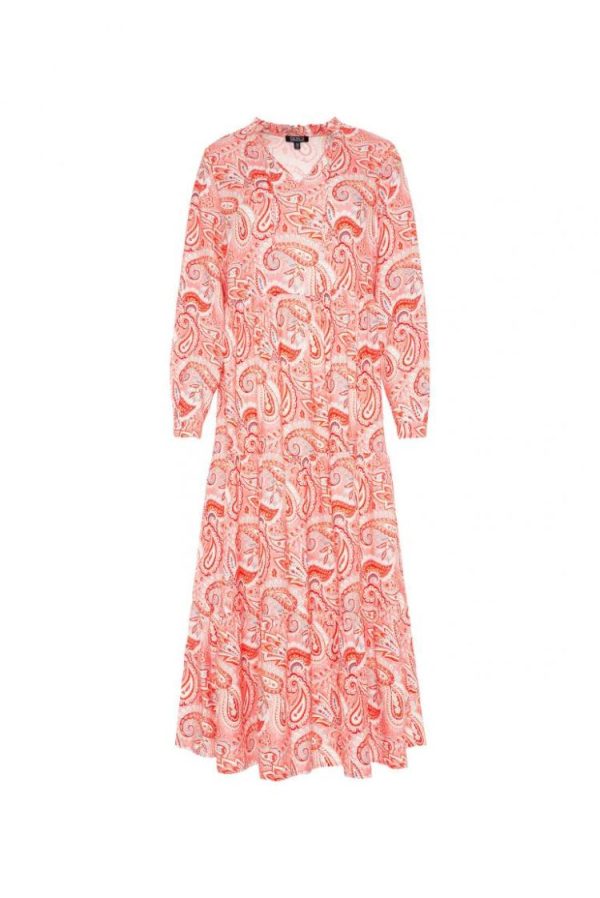 Das orientalische Muster fasziniert immer wieder und bringt in Pinktönen das Maxikleid von SOCCX zum Leuchten. Das fließende Kleid ist mit einem Tunika-Ausschnitt mit Rüschenkante gestaltet, mit klassischen Volants am Rockteil und mit weiten Ärmeln mit Knopfmanschette am Abschluss. Das Paisley-Kleid ist perfekt für die Sommer- und Urlaubs-Saison! Das Model ist 175 cm groß und trägt Gr. S.
