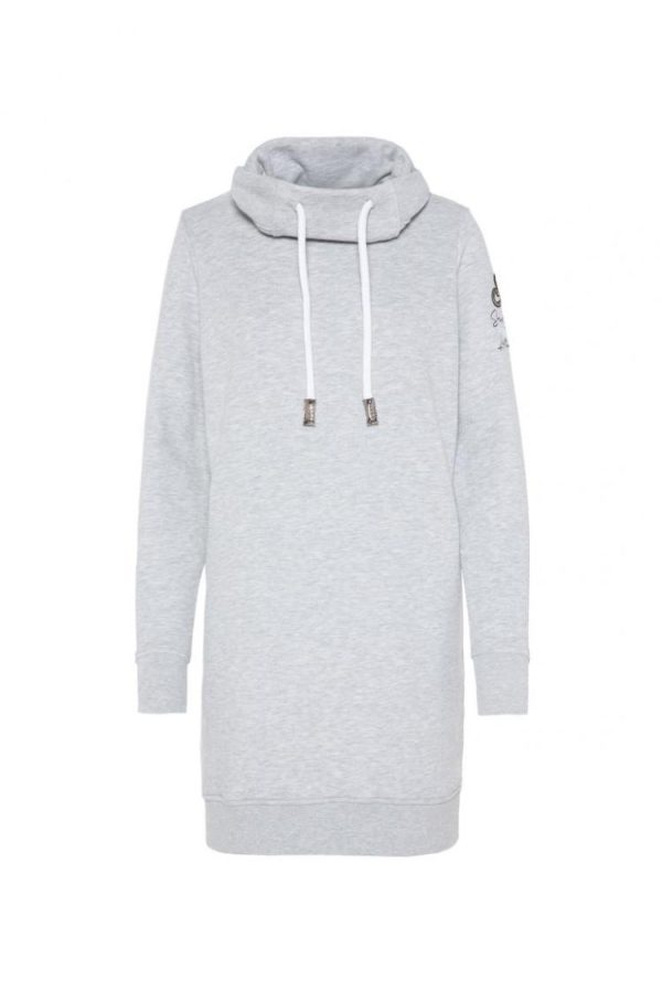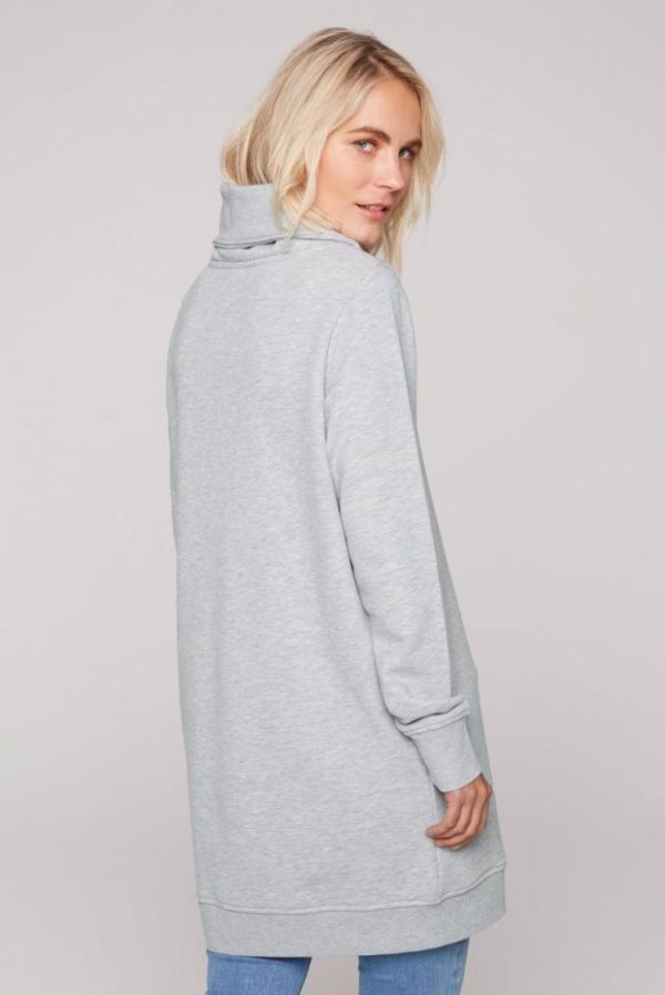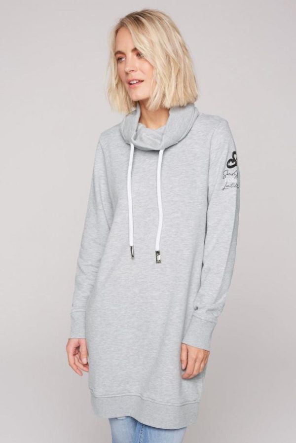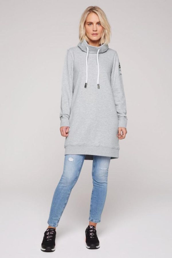 Wandelbar ist das komfortable Sweatkleid von SOCCX. Es ist mit einem kuscheligen, hohen Kragen mit Kordelzug gestaltet und hat ein kleines Logo Artwork auf dem linken Oberarm. Die Wahl des Schuhs bestimmt den Look von lässig sportlich bis smart feminin. Ob Sneaker, Overknee-Stiefel oder Boots – passt alles! Und über die Slim Fit Jeans passt es auch. Das Model ist 176 cm groß und trägt Gr. S.