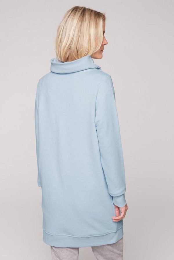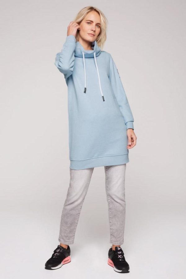 Wandelbar ist das melierte, komfortable Sweatkleid von SOCCX. Es ist mit einem kuscheligen, hohen Kragen mit Kordelzug gestaltet und hat ein kleines Logo Artwork auf dem linken Oberarm. Die Wahl des Schuhs bestimmt den Look von lässig sportlich bis smart feminin. Ob Sneaker, Overknee-Stiefel oder Boots – passt alles! Und über die Slim Fit Jeans passt es auch. Das Model ist 176 cm groß und trägt Gr. S.