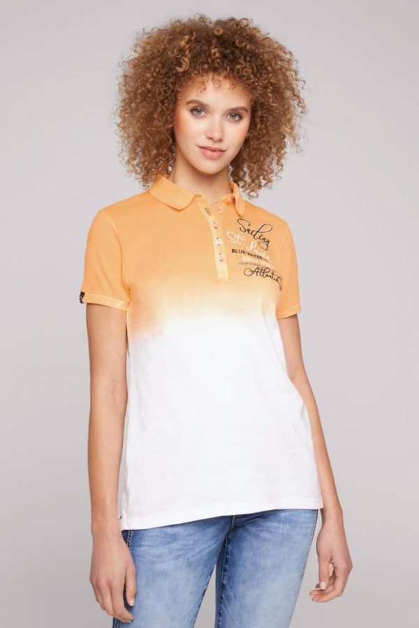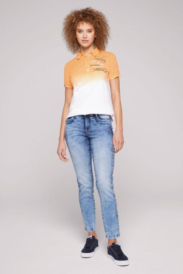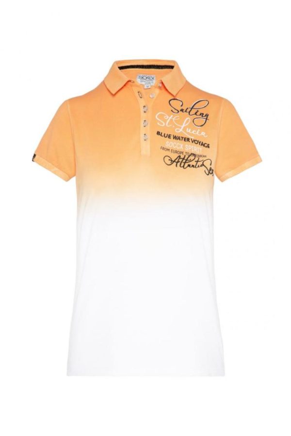Ahoi! Sportlich-elegant wird der Casual Look mit diesem Poloshirt von SOCCX. Es ist aus Pikee gefertigt und hat einen sommerlichen Dip-Dye-Effekt. Klassisch sind der Trikotkragen und die Ärmelbündchen, feminin die lange Knopfleiste. Label-Applikationen mit Stickereien schmücken die linke Vorderseite und den oberen Rücken. Das Model ist 174 cm groß und trägt Gr. S.