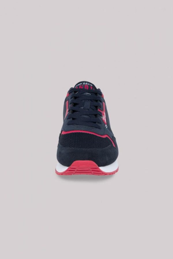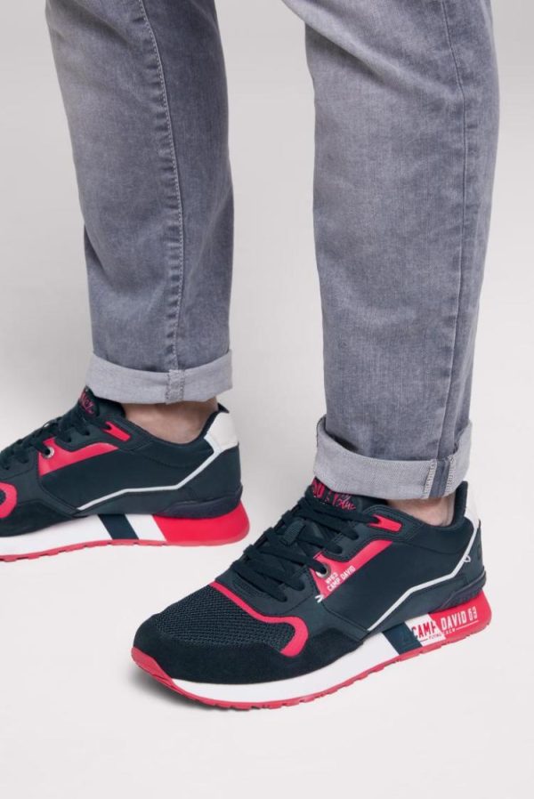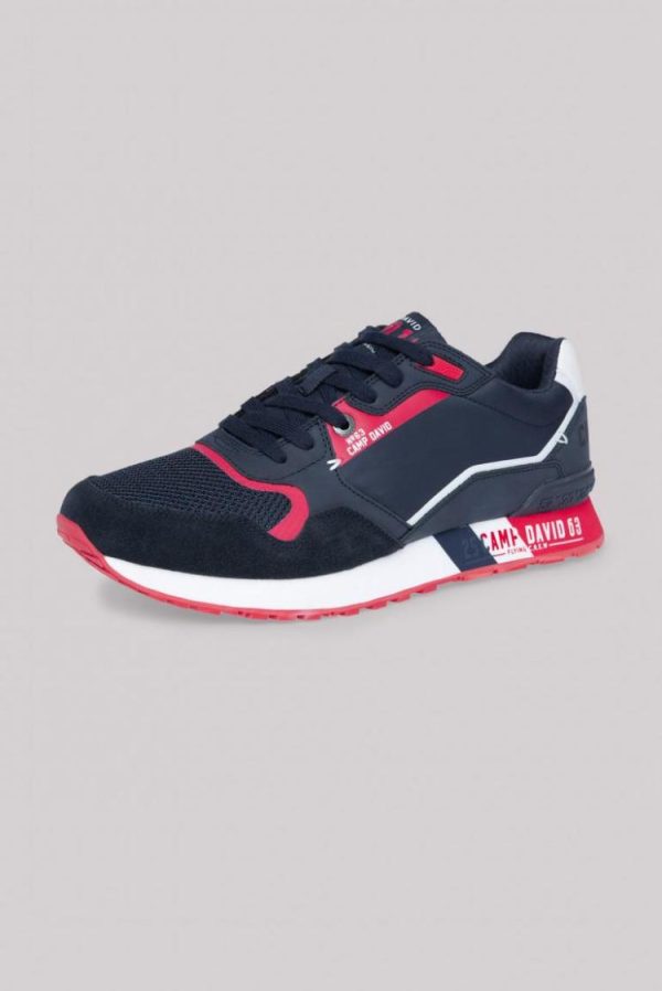 Drei klassische Farben vereinen sich perfekt für den Retro Look des CAMP DAVID Sneakers. Der sportive Turnschuh setzt auf eine Mesh-Spitze im Mix mit Nylon, Synthetik-Besätzen und Leder um den Schuh robuster zu machen. Logo Artworks finden sich auf der EVA-Zwischensohle, auf der Lasche, an den Seiten und an der Ferse. Der komfortable Sneaker hat einen guten Grip und passt stylisch zu vielen Outfits. Weite: G (Normalweite).