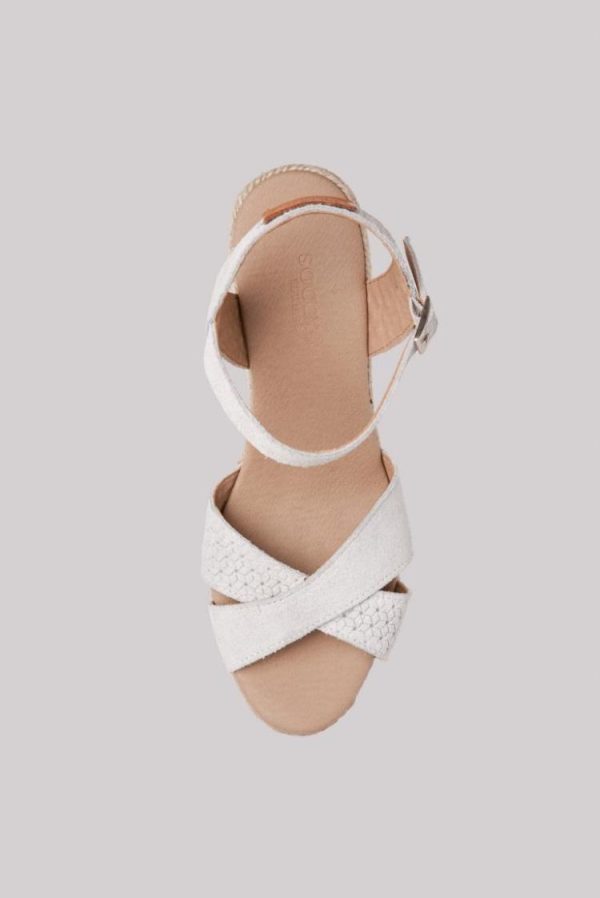 Feminin wird jeder Look mit dieser hochwertigen SOCCX Espadrille aus weichem Veloursleder mit modischem Keilabsatz. Riemen mit Prägemuster mischen sich mit glatten Riemen und sorgen für einen edlen Style mit der hohen Bastsohle. Der Fersenriemen ist mit einem Label Patch aus Leder gestaltet. Weite: G (Normalweite).