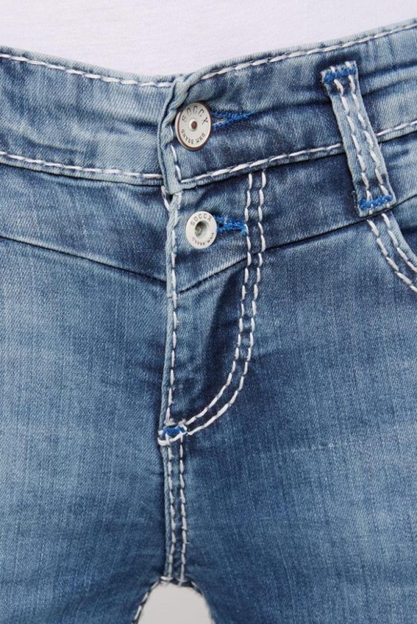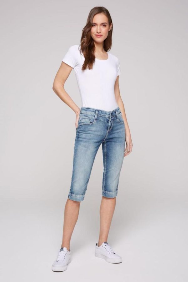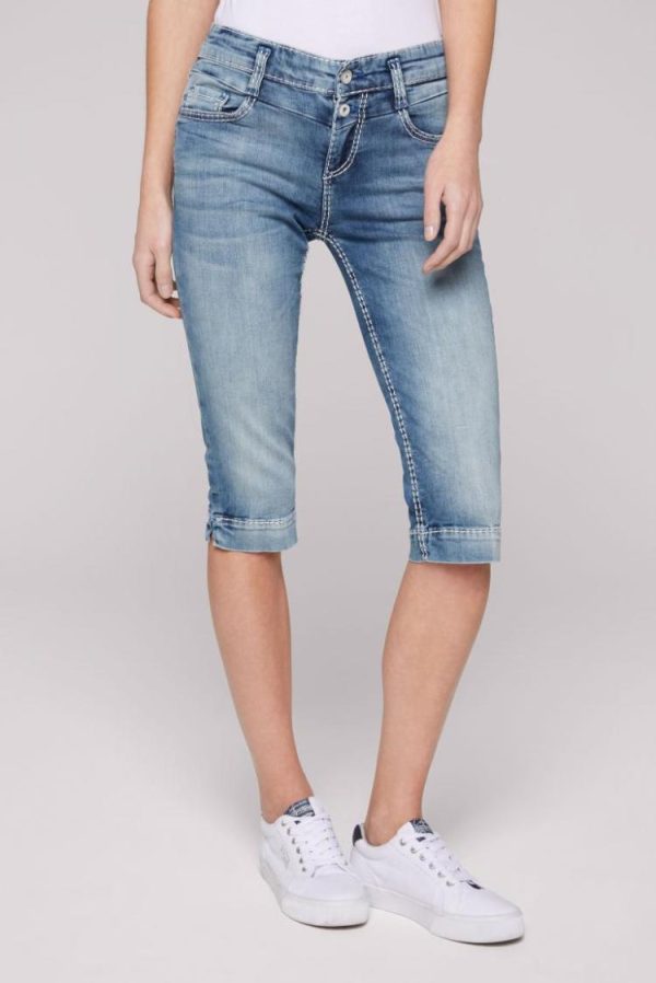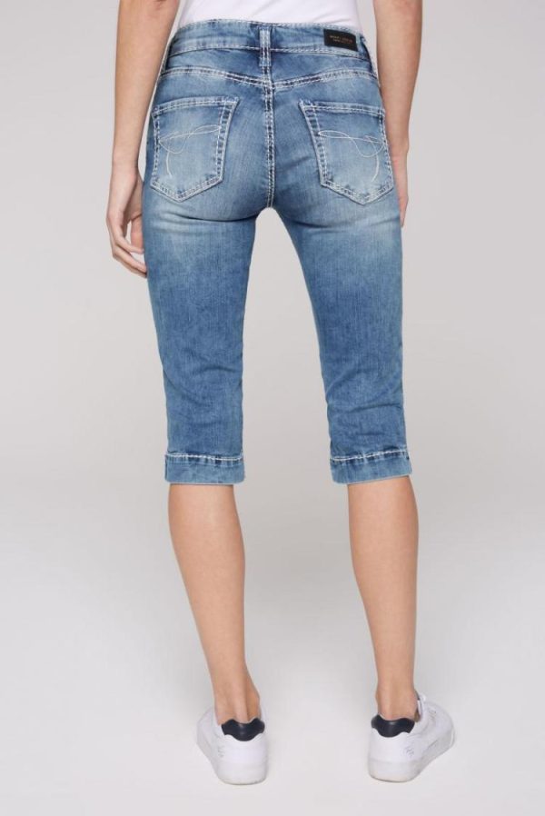 Breite Kontrastnähte und ein Knopf-Detail setzen coole Akzente in der Kombination mit der lässigen Used-Waschung. Die Capri Jeans von SOCCX hat eine gute Elastizität und Oberschenkelweite, sowie einen Saum-Schlitz. Waschung: Smart Foam, ein umweltschonendes Waschverfahren mit Schaum-Technologie. Das Model ist 176 cm groß und trägt W27.