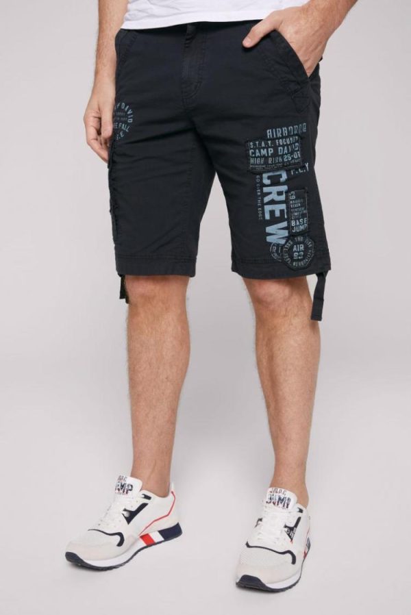 Auffällige Label-Applikationen bestimmen den Look dieser CAMP DAVID Skater Shorts. Da fällt erst gar nicht auf, dass sie mit nur einer Beintasche punktet. Bein- und Gesäßtaschen sind mit einer Klappe und Druckknopfverschlüssen ausgestattet. Tonige Tapes kommen an allen Taschen zum Einsatz. Die Skater Shorts komplettiert das coole Base Jumping Outfit. Das Model ist 191 cm groß und trägt Gr. M.
