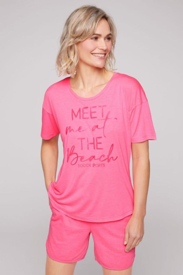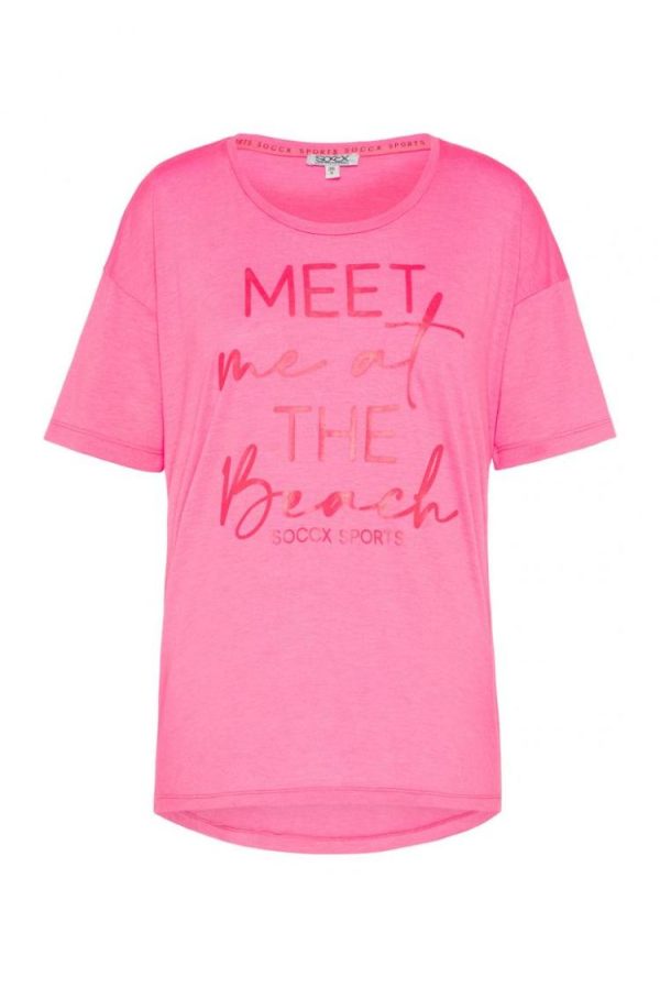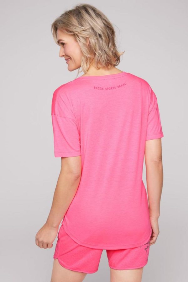 Das SOCCX Sport-T-Shirt überzeugt mit seinem leichten, fließenden Material und dem lockeren Schnitt. Labeltypische Logo Prints zieren groß die Vorderseite und dezent den Rücken. Das Model ist 177 cm groß und trägt Gr. S.
