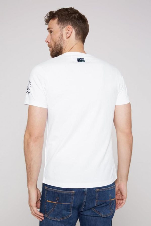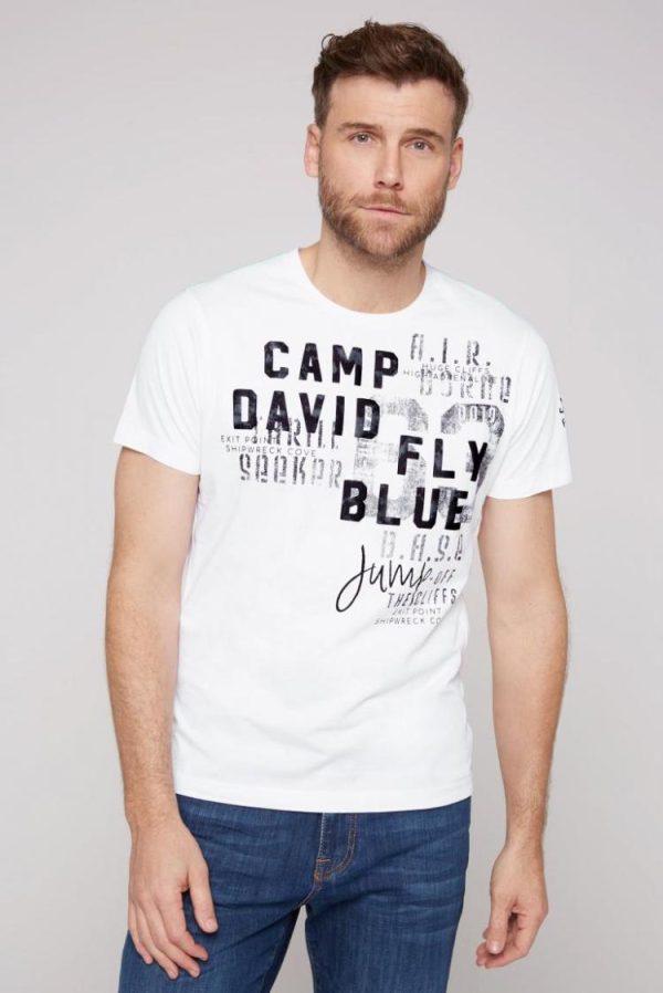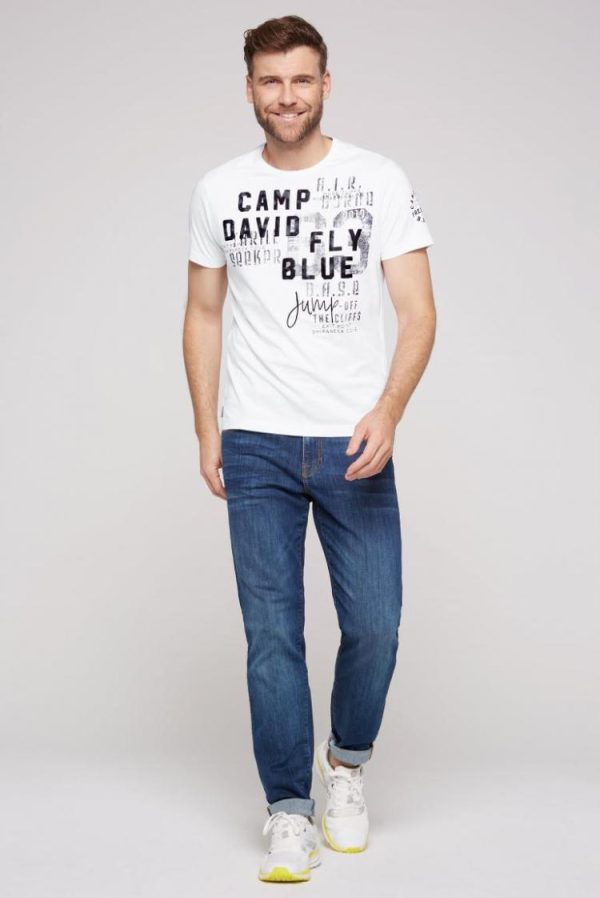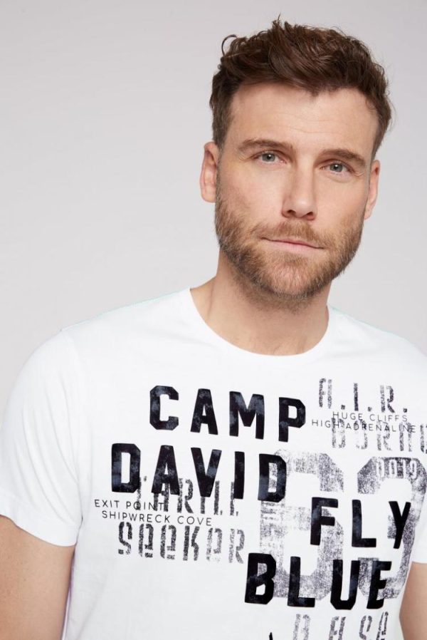 Ein Base Jump inspiriertes Artwork, teils mit Puff Print, setzt dieses CAMP DAVID T-Shirt in Szene. Kleinere Label-Applikationen finden sich am linken Ärmel und auf dem oberen Rücken. Tonige Tapes sind an den Seitennähten designt. Das Model ist 189 cm groß und trägt Gr. M.