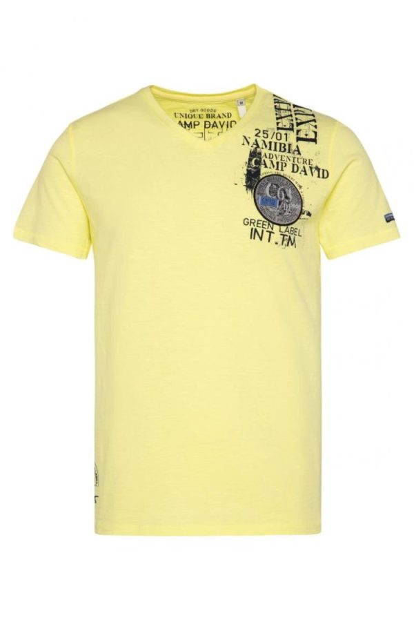 Ein CAMP DAVID T-Shirt für alle die gern on Tour sind! Label Prints und Patches zieren die Vorderseite, ein Print mit Stickereien die Rückenpasse. Der maskuline V-Ausschnitt verstärkt den Adventure Look. Das Model ist 188 cm groß und trägt Gr. M.