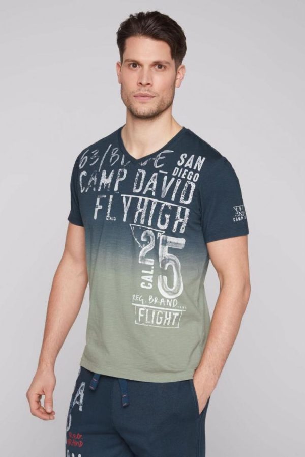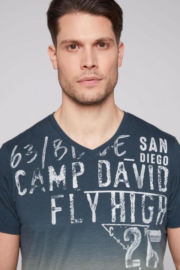 Dieses CAMP DAVID T-Shirt mit maskulinem V-Ausschnitt trumpft mit einem lässigen Farbverlauf und einem plakativen Used Print auf der Vorderseite. Das softe V-Shirt hat eine Flammgarnstruktur und kleinere CAMP DAVID Artworks auf dem Rücken und auf dem linken Ärmel. Das Model ist 189 cm groß und trägt Gr. M.