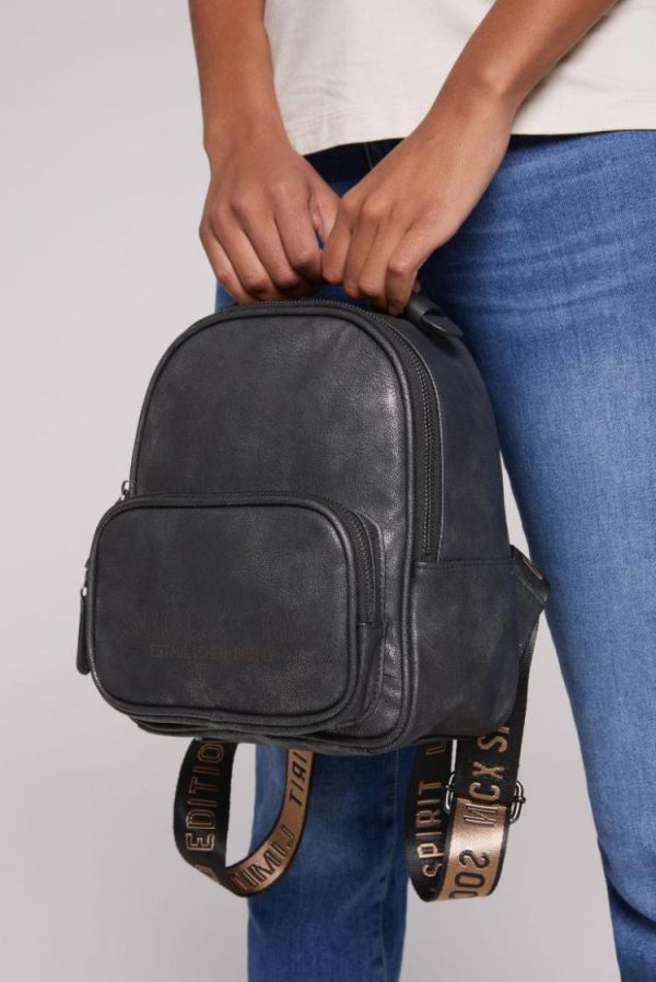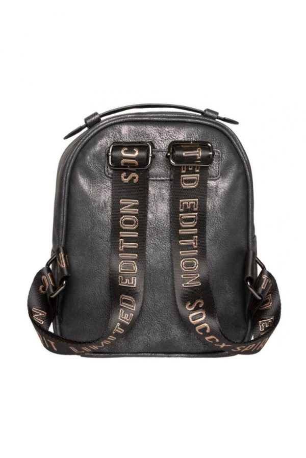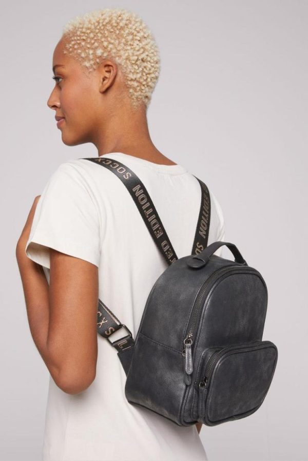Die modischen Logo-Gurte machen auch vor dem kleinen SOCCX Rucksack nicht halt, denn sie verleihen ihm ein frisches Upgrade. Der Rucksack aus Lederimitat hat ein metallisches Coating und ein Vorfach mit Print und Zipper. Im Hauptfach ist ausreichend Platz für die wichtigsten Dinge. Auch eine kleine Trinkflasche passt hinein. Maße (H x B x T): 25 x 20 x 15 cm; Gurtbreite: 3,5 cm.