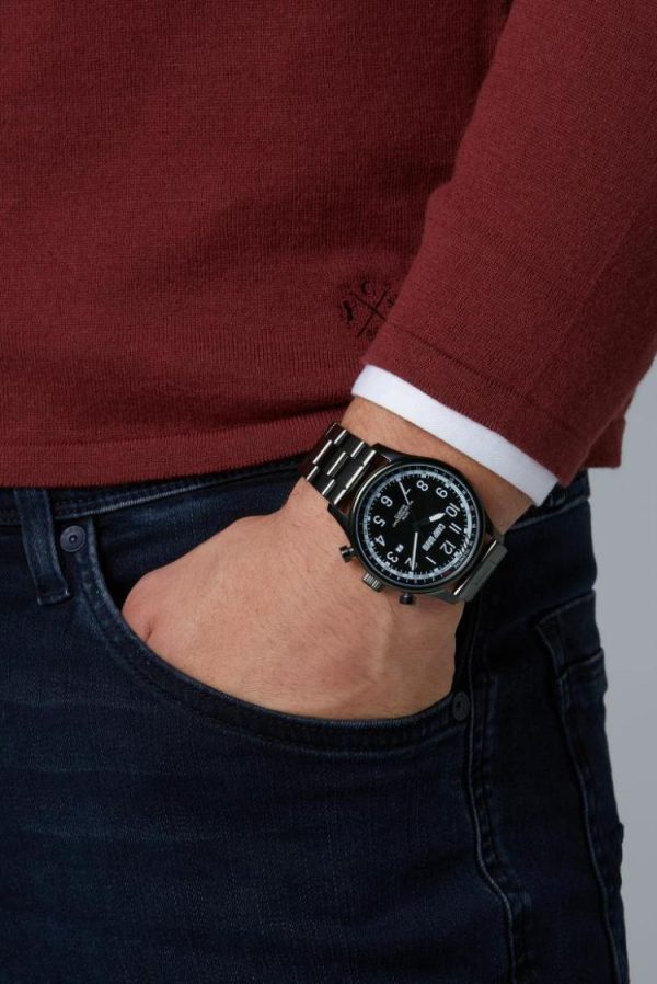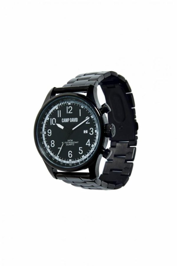 Brandneu – CAMP DAVID fürs Handgelenk! Ein maskuliner Klassiker ist diese Herrenuhr mit dunklem Edelstahlarmband und einem matt schwarzem Ziffernblatt mit Logo. Die wasserdichte Uhr verfügt zudem über eine Datumsanzeige und sie ist mit einer dekorativen Lünette auf dem Ziffernblatt gestaltet. Das Glasgehäuse aus Mineralkristallglas ist speziell beschichtet und besonders stoß- und kratzfest. WEEE-Nummer DE 52747842.